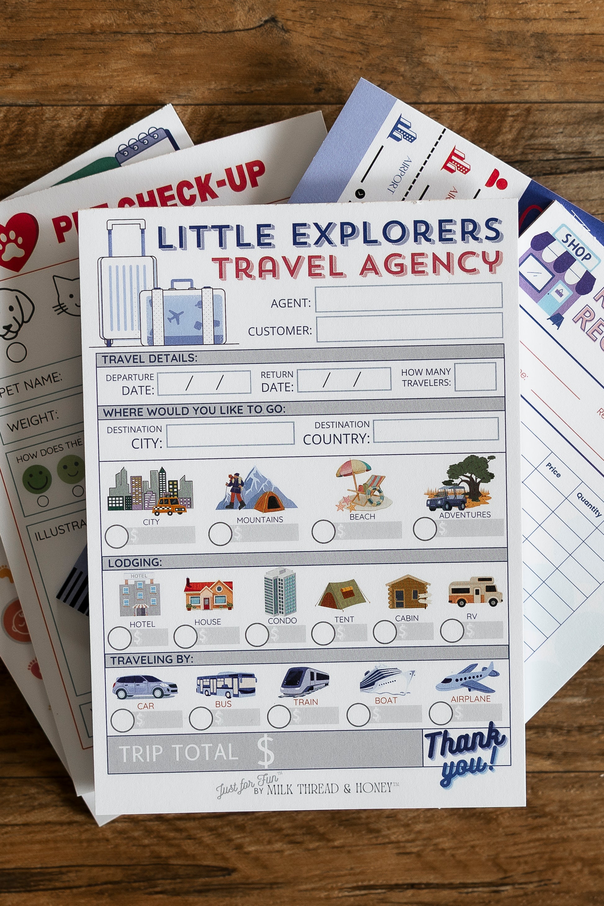 Daycare Log, Travel Agent, Boarding Pass, Travel Agent - Set of 5 Pretend Play Notepads